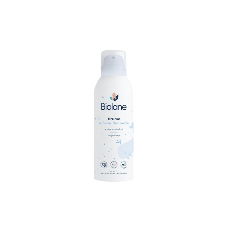Biolane – Brume Rafraîchissante à l'Eau Thermale Apaise et rafraîchit la peau délicate de bébé – Dès la naissance La brume rafraîchissante Biolane est spécialement formulée pour apaiser, hydrater et rafraîchir la peau sensible des tout-petits. Sa formule 100 % naturelle à base d’eau thermale française procure une sensation immédiate de confort et de bien-être, tout en respectant parfaitement l’équilibre cutané du nourrisson.