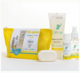 Contient un gel lavant corps Pierre de Soleil 350 ml, une eau parfumée cheveux & corps 100 ml aux notes chaudes et ensoleillées, une eau tonique visage Pureté+ Vitamine C 150 ml OFFERTE, le tout accompagné d’une trousse pratique OFFERTE.