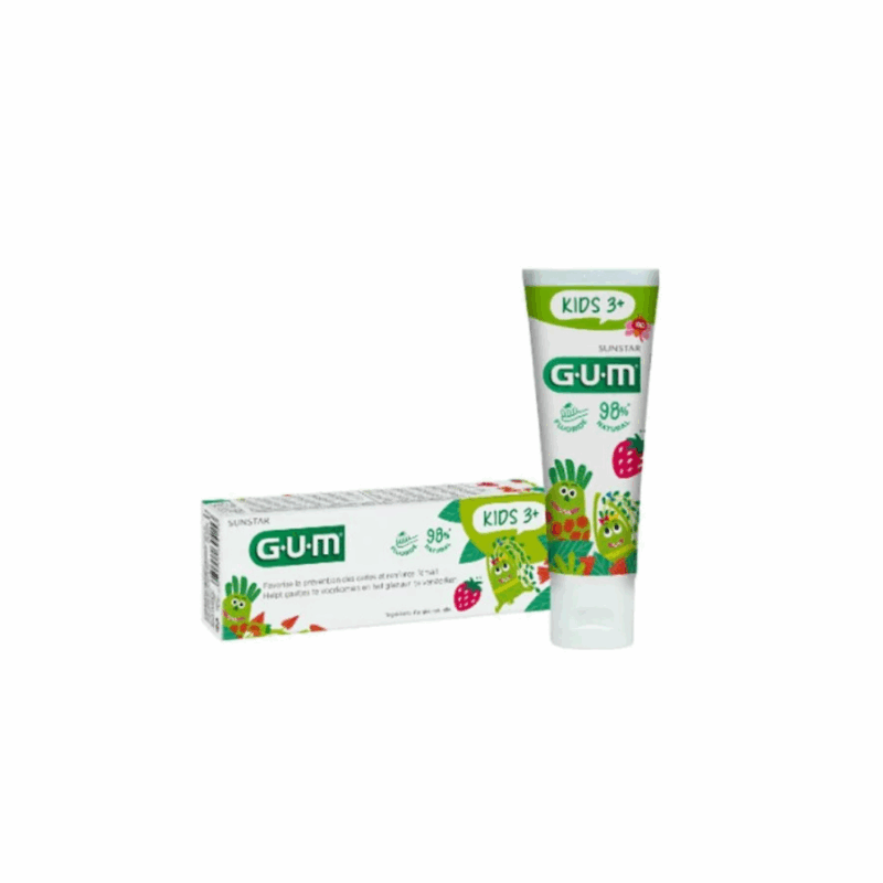 GUM Dentifrice Kids 3+ protège et soigne les premières dents de votre enfant dès 3 ans. Sa formule douce assure un nettoyage efficace tout en respectant les gencives sensibles des tout-petits. Avec son goût agréable, il transforme le brossage en un moment ludique et facile à adopter. Testé dermatologiquement et formulé pour minimiser les risques d’allergies, il est idéal pour une hygiène bucco-dentaire en toute sécurité.