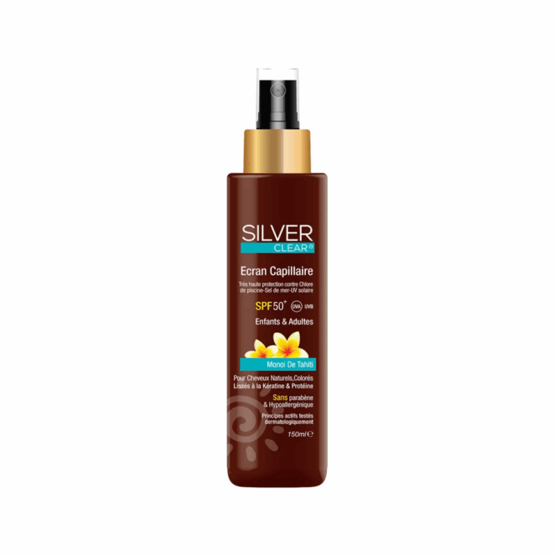 Protégez vos cheveux du soleil avec le Silver Écran Capillaire Cheveux SPF50+. Ce spray haute protection préserve la fibre capillaire des effets néfastes des UV, tout en évitant le dessèchement et la décoloration. Idéal en été ou en exposition prolongée, il forme un véritable bouclier protecteur. Léger, non gras, il convient à tous les types de cheveux. Testé dermatologiquement et hypoallergénique.