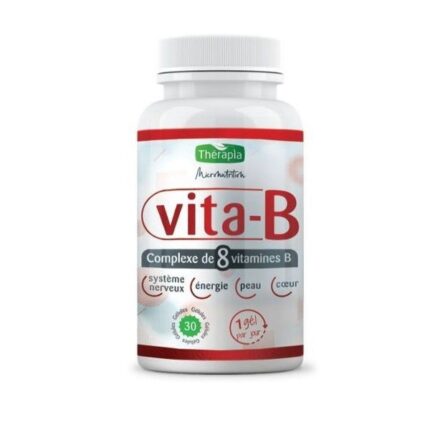 THERAPIA VITA-B est un complexe de vitamines B conçu pour soutenir votre énergie, votre concentration et votre équilibre nerveux. Idéal en cas de fatigue, stress ou baisse de régime, il aide à maintenir vos fonctions vitales au quotidien. Une formule complète pour rester actif et serein tout au long de la journée. Gélules faciles à prendre, pour un confort optimal.