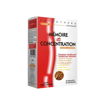 Boostez vos capacités mentales avec PHYTOTHERA MÉMOIRE ET CONCENTRATION. Ce complément naturel aide à stimuler la mémoire, la vigilance et la concentration, grâce à sa formule ciblée à base de plantes et de nutriments essentiels. Idéal pour les périodes d'examens, de surmenage ou de baisse de performance cognitive. Testé sous contrôle dermatologique et hypoallergénique pour une tolérance optimale.