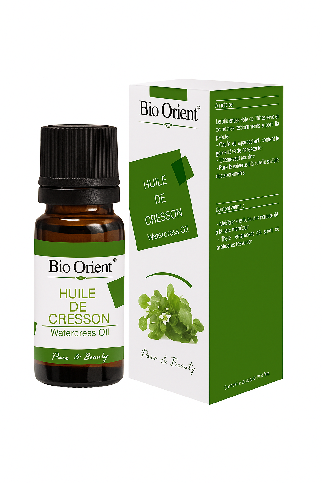 BIO ORIENT HUILE DE CRESSON est une huile végétale 100 % pure et naturelle, issue des graines de cresson, reconnue pour ses propriétés tonifiantes et stimulantes sur le cuir chevelu. Elle favorise la croissance capillaire, aide à réduire la chute de cheveux et redonne vitalité à la chevelure.