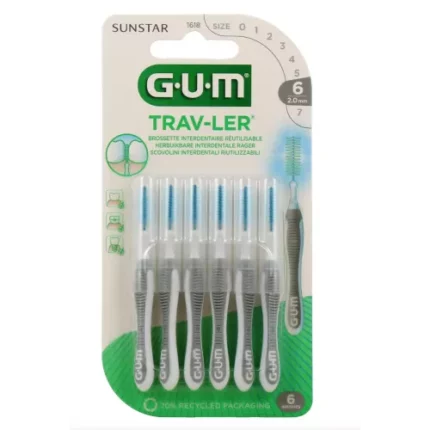 GUM Trav-ler Brossettes interdentaires 2.0 mm Gris 6 Brossettes TND 16,000