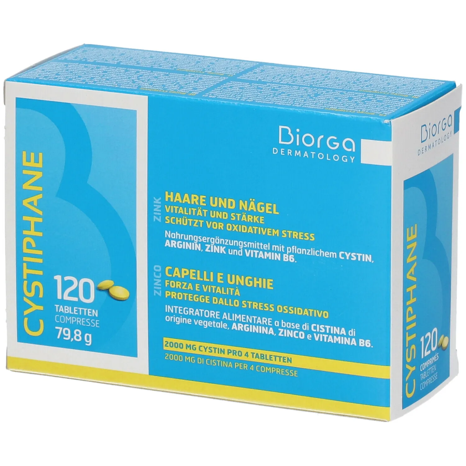 CYSTIPHANE est un complément alimentaire à base de Cystine d’origine végétale, de Vitamine B6, d’Arginine et de Zinc.