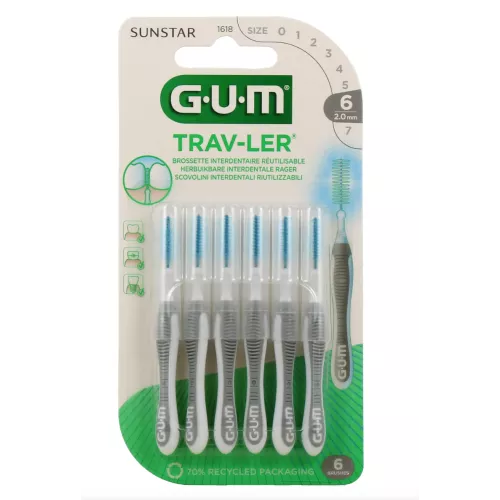 GUM Trav-ler Brossettes interdentaires 2.0 mm Gris 6 Brossettes