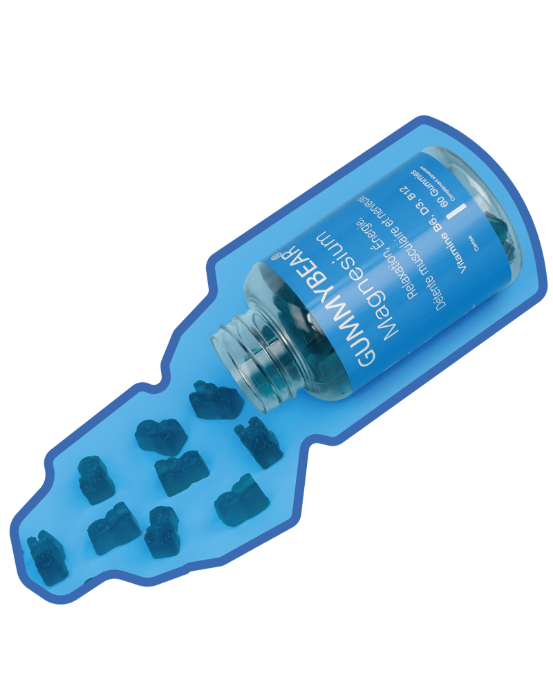 GUMMYBEAR Magnésium est un complément alimentaire à base de magnésium citrate et de vitamines B6, B12 et D3, conçu pour favoriser la relaxation, l’énergie et la détente musculaire et nerveuse.