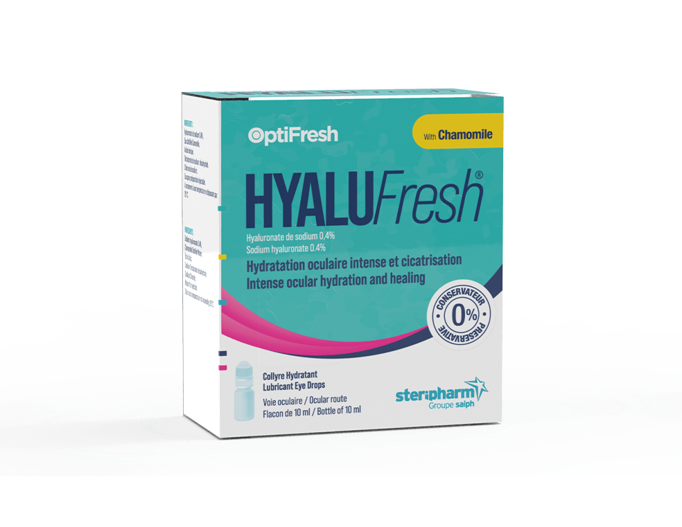 Hyalu Fresh Collyre Hydratant est un collyre stérile formulé pour hydrater et lubrifier la surface oculaire, tout en soulageant efficacement la sécheresse oculaire et les sensations d’irritation ou de gêne. Grâce à l’action de l’acide hyaluronique, il restaure le film lacrymal et améliore le confort visuel, en particulier en cas d’agressions environnementales ou mécaniques.