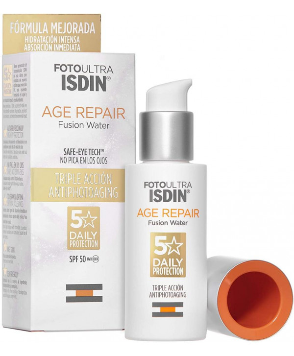 ISDIN AGE REPAIR SPF50+ combine une protection solaire maximale avec une action réparatrice pour corriger les signes du vieillissement cutané. Sa formule avancée protège la peau des rayons UVA et UVB tout en agissant sur les taches pigmentaires et les rides. Sa texture légère et non grasse hydrate en profondeur et préserve la jeunesse de votre peau. Pour une peau protégée, réparée et éclatante, optez pour ISDIN AGE REPAIR SPF50+.