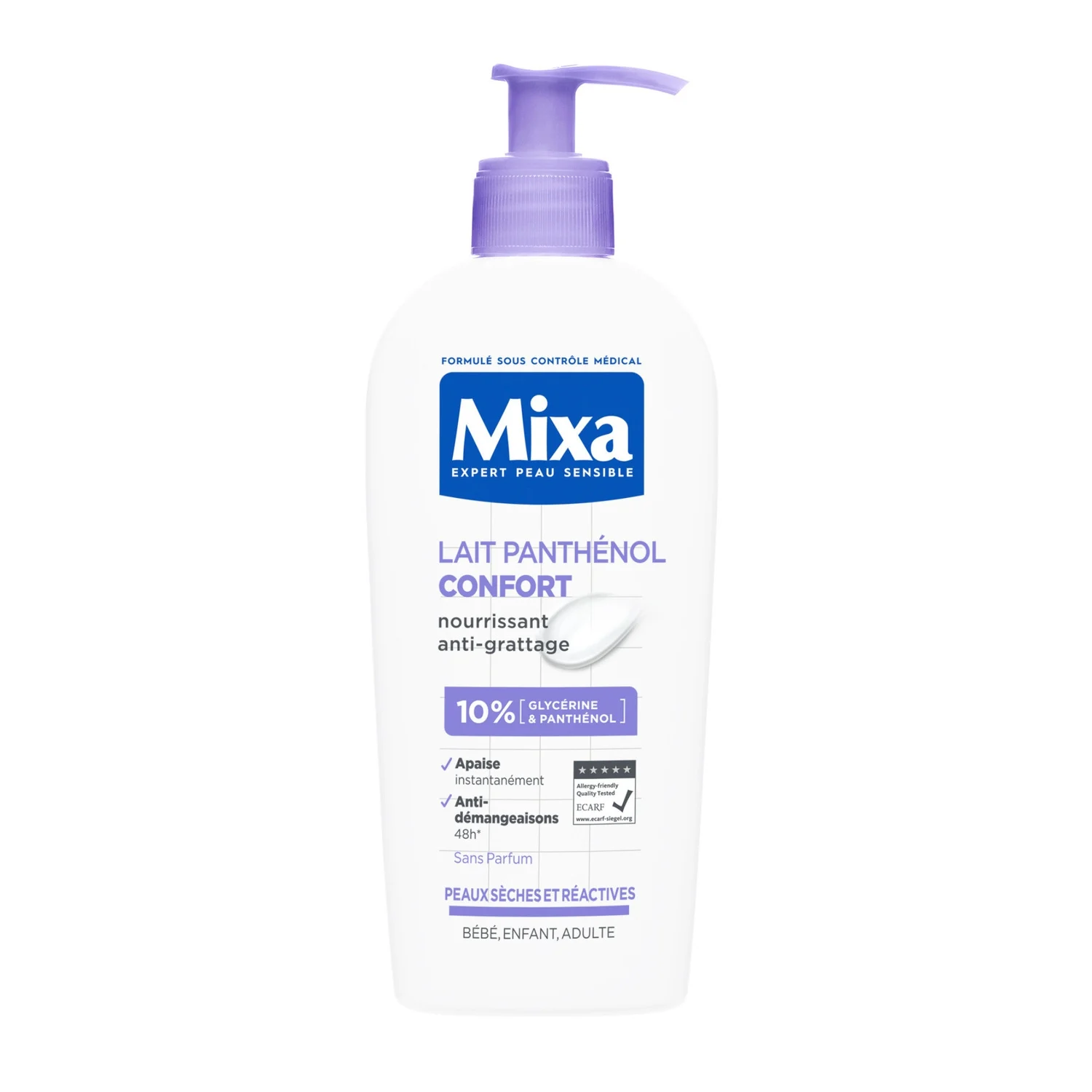 Le Lait Panthénol Confort de Mixa est un soin spécialement formulé pour répondre aux besoins des peaux sensibles sujettes à l’inconfort, notamment les tiraillements, les rougeurs et la sécheresse. Grâce à sa formule enrichie en Panthénol, reconnu pour ses propriétés apaisantes, ce lait hydrate intensément et aide à restaurer la barrière cutanée.