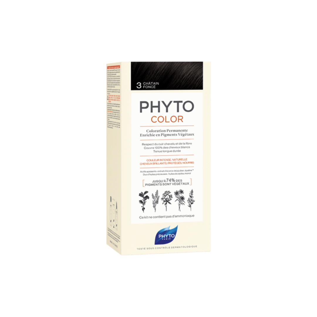 PHYTO COLORATION PERMANENTE 3 est une coloration permanente aux pigments végétaux qui apporte une couleur riche, naturelle et lumineuse tout en prenant soin du cuir chevelu et de la fibre capillaire. Elle garantit une couvrance parfaite des cheveux blancs dès la première application.