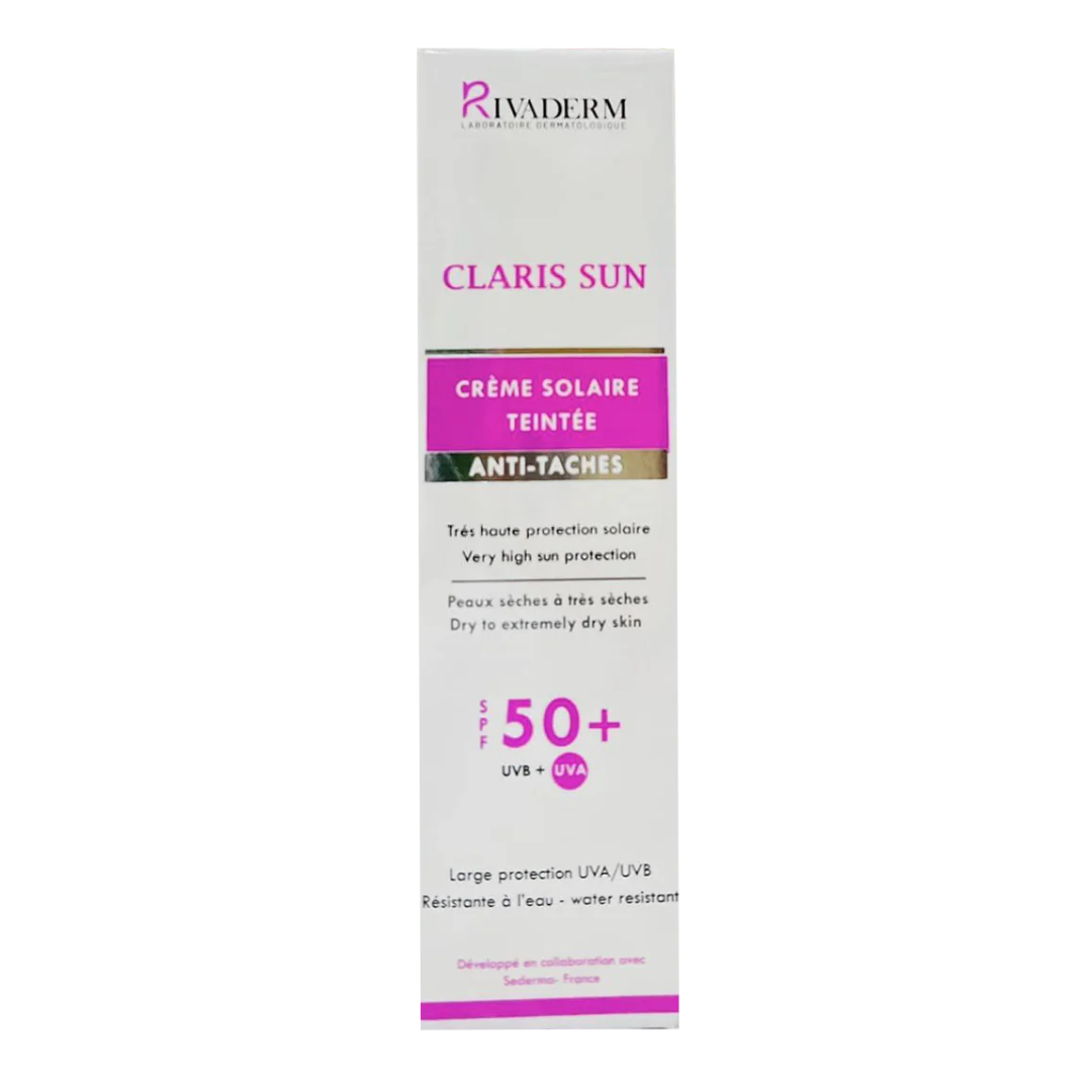 RIVADERM CLARIS SUN TEINTEE SPF50+ est une crème solaire teintée haute protection, offrant une défense optimale contre les rayons UVA et UVB grâce à son indice SPF50+. Cette formule avancée est spécialement conçue pour les peaux sensibles, et son action teintée permet d’unifier et de sublimer le teint tout en dissimulant les imperfections. Sa texture légère et non grasse hydrate et protège la peau tout au long de la journée, apportant un éclat naturel et unifié. Parfaitement adaptée pour une utilisation quotidienne, elle offre une protection complète tout en sublimant la beauté de la peau.