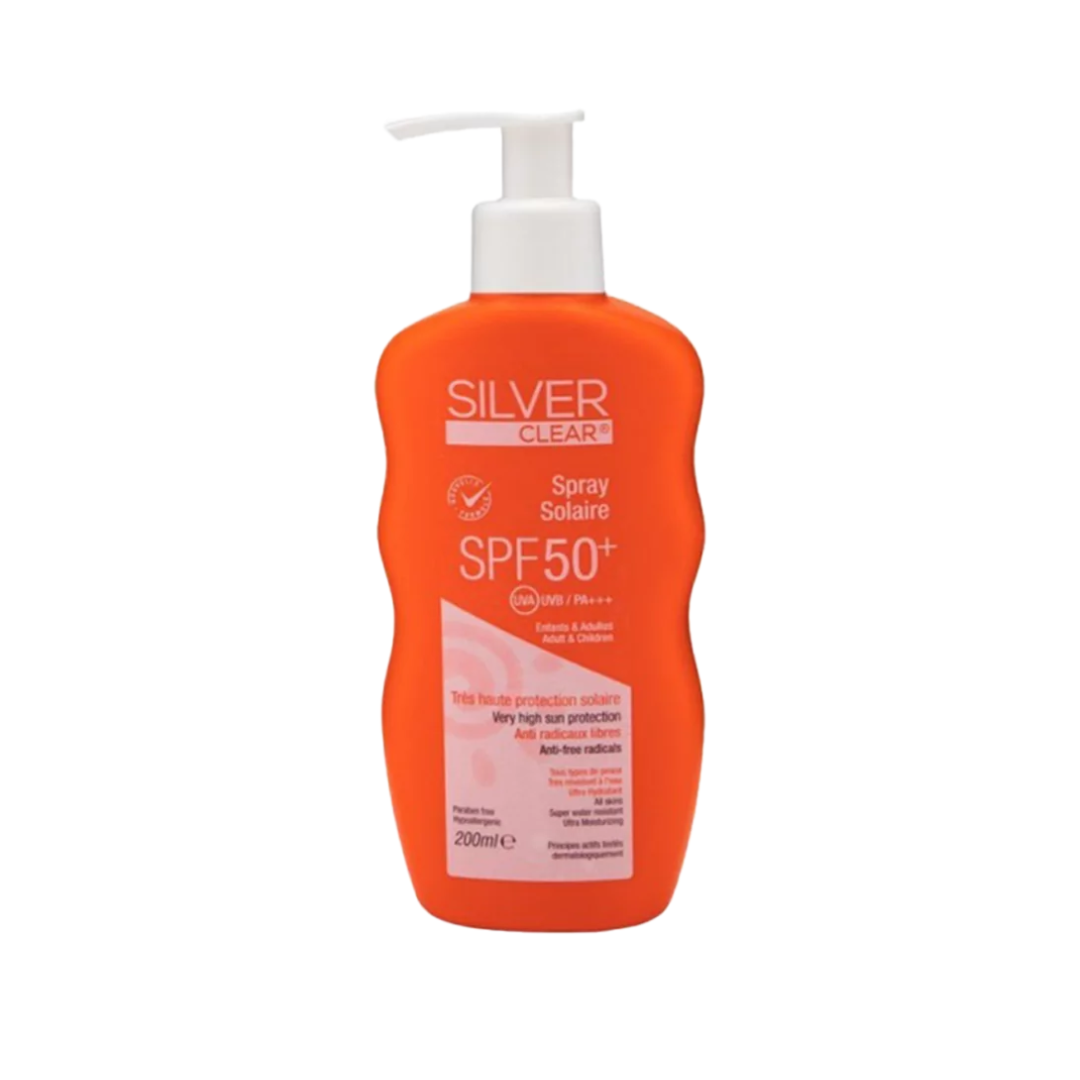 Protégez votre peau efficacement avec Silver Clear Spray Solaire SPF50+. Sa formule haute tolérance offre une très haute protection contre les UVA et UVB tout en respectant les peaux les plus sensibles. Invisible, léger et résistant à l’eau, ce spray est idéal pour un usage quotidien comme en pleine exposition. Une défense solaire sûre et performante.