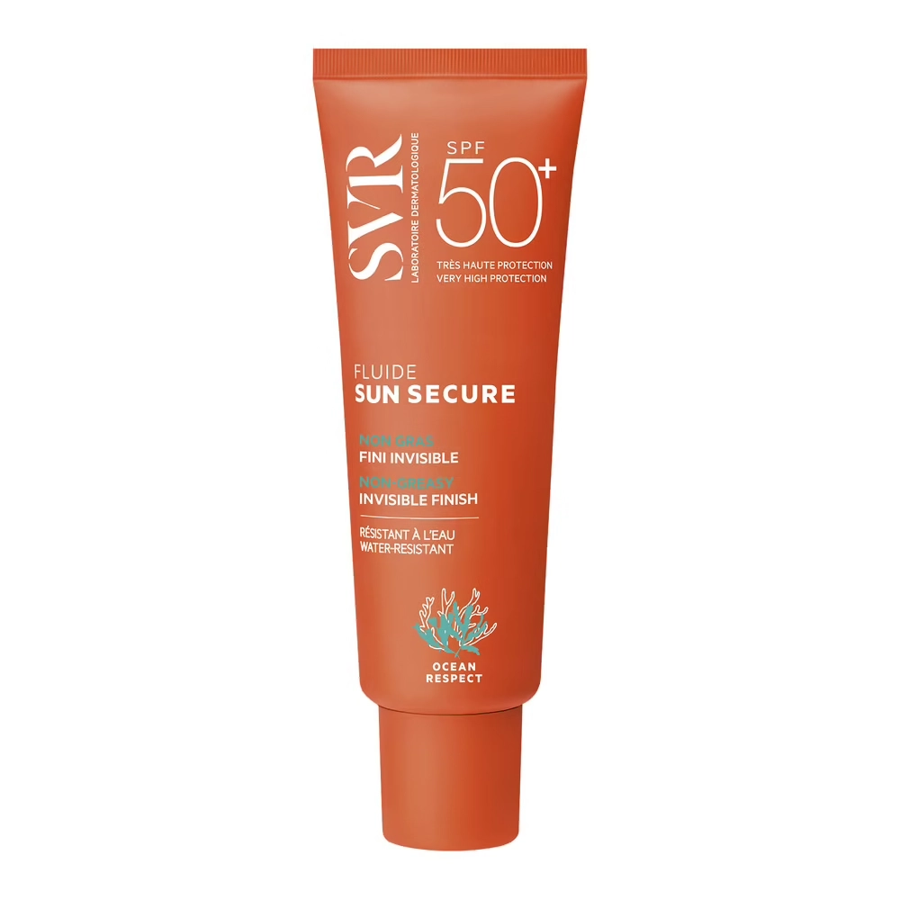 SVR Sun Secure Fluide SPF50+ 50ml offre une très haute protection dermatologique intégrant le nouveau brevet filtrant SVR.