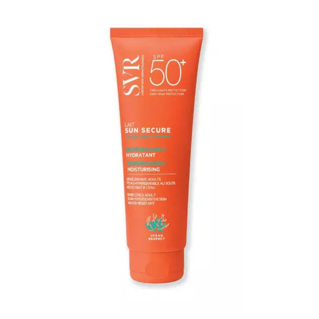 SVR Sun Scur Lait SPF50+ est un soin solaire conçu pour offrir une très haute protection contre les rayons UVA et UVB, tout en maintenant l’hydratation et le confort de la peau. Ce lait solaire, enrichi en filtres solaires de large spectre, protège efficacement la peau des effets nocifs du soleil, tout en prévenant les coups de soleil et le vieillissement prématuré. Sa texture fluide et non grasse pénètre rapidement, laissant la peau douce et protégée, sans sensation de lourdeur ni résidu.
