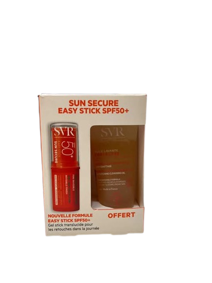 SVR SUN SECURE Stick SPF50+ est un soin solaire visage au format nomade spécialement conçu pour protéger efficacement les zones sensibles et localisées du visage (nez, pommettes, oreilles, cicatrices, taches pigmentaires). Sa formule offre une très haute protection solaire SPF50+, couvrant l’ensemble du spectre des rayonnements (UVA, UVB, lumière visible, infrarouges). Grâce à sa texture invisible, non grasse et facile à appliquer, il convient à toute la famille, dès la naissance, y compris aux peaux hypersensibles ou atopiques. Très résistant à l’eau, à la transpiration et aux frottements, il s’adapte à toutes les situations du quotidien. Sa formule hypoallergénique a été testée sous contrôle dermatologique et pédiatrique pour garantir une tolérance optimale.